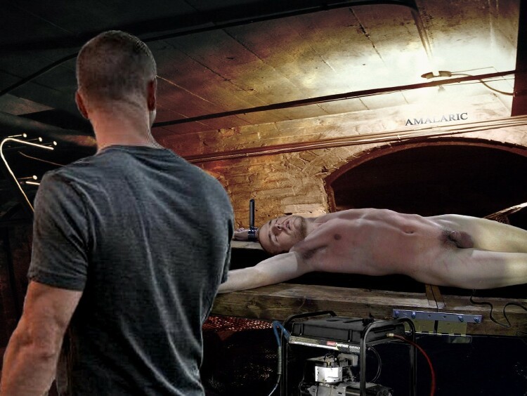 Cesare tortures the balls of a muscular captured Dane who plotted to harm his father.